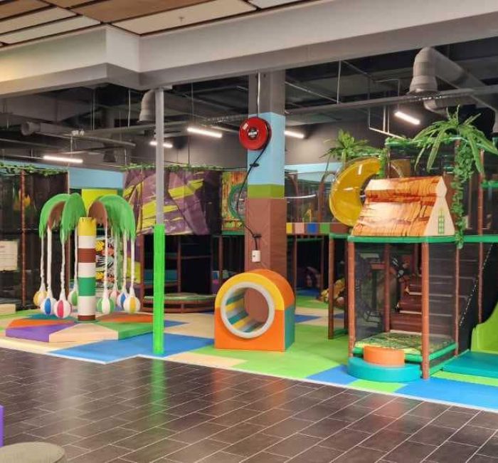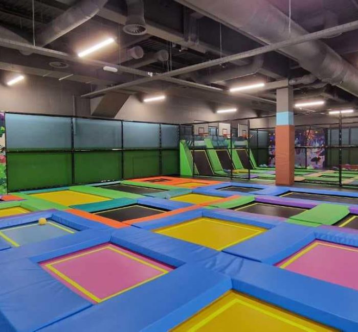 OBS. Man skal have skridsikker strømper på, når man er på trampolinerne.
