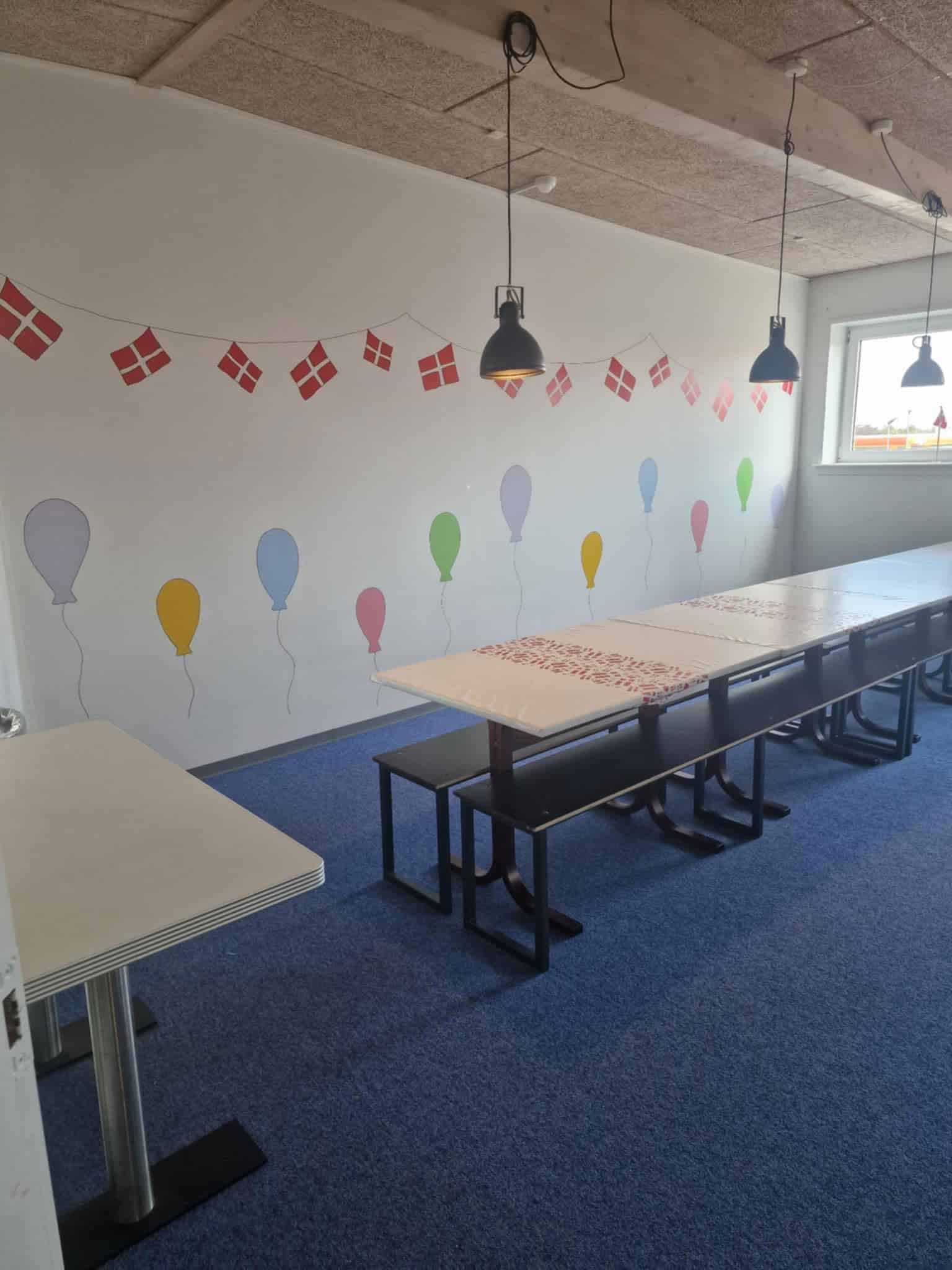 Vi stiller borde og bænke op. Vi anbefaler at festen er for børn på max 8 år, da Hermans Hule er til små børn.